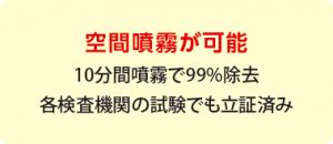 安心・安全な除菌ダ!は空間噴霧も可能な次亜塩素酸水です。